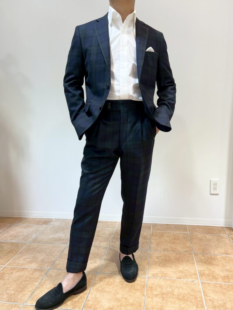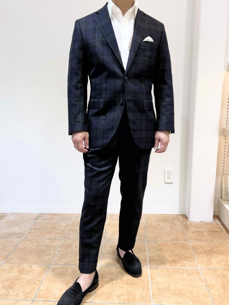 ビジネススーツといえば無地が定番ですが、そこに少し遊び心を効かせたいときにおすすめなのが、このブラックウォッチ。