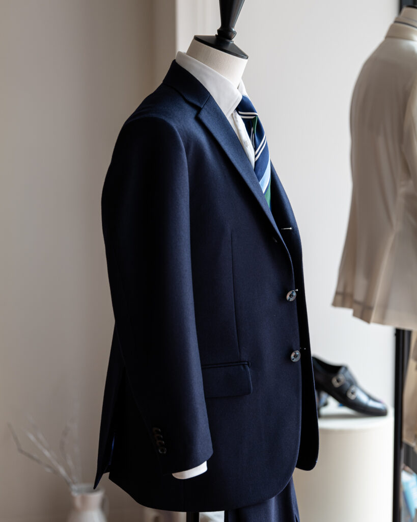 イタリア生地らしい柔らかさを持ちながら、だらしなく見えない絶妙なバランスは、カノニコならではと言えるでしょう。