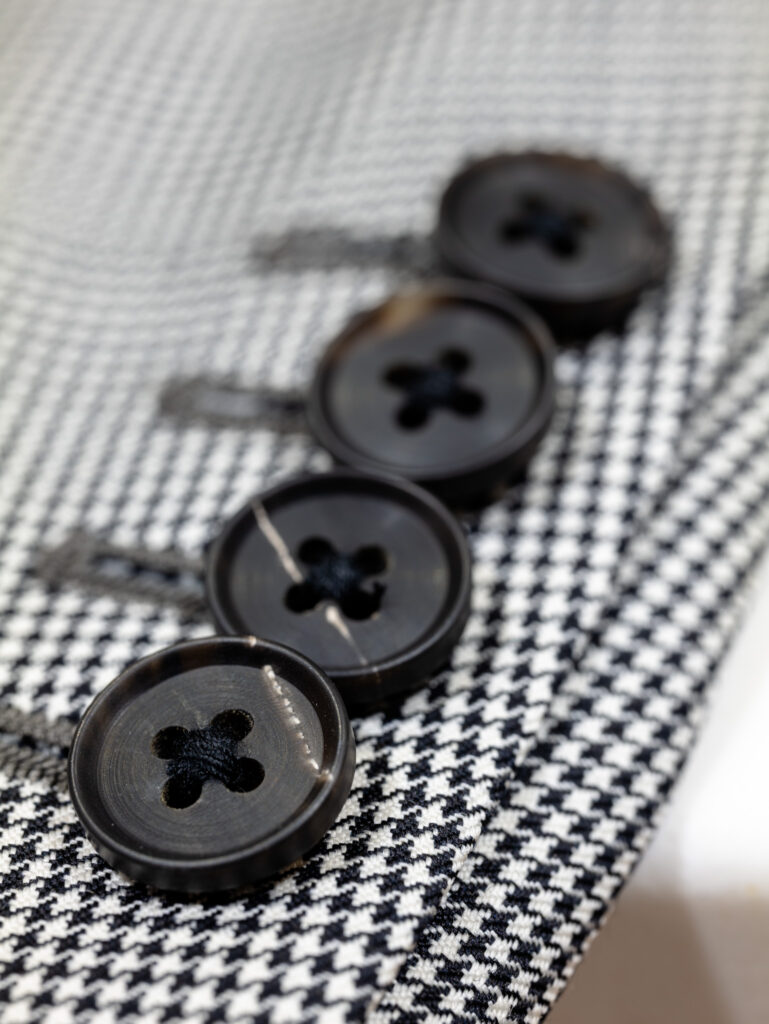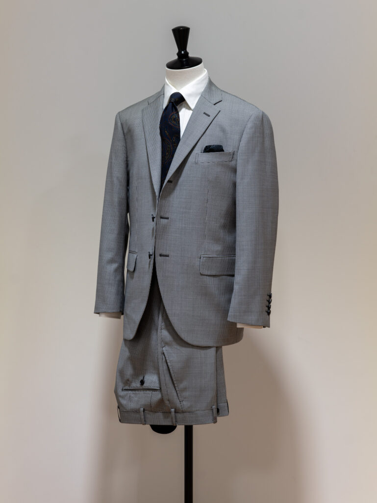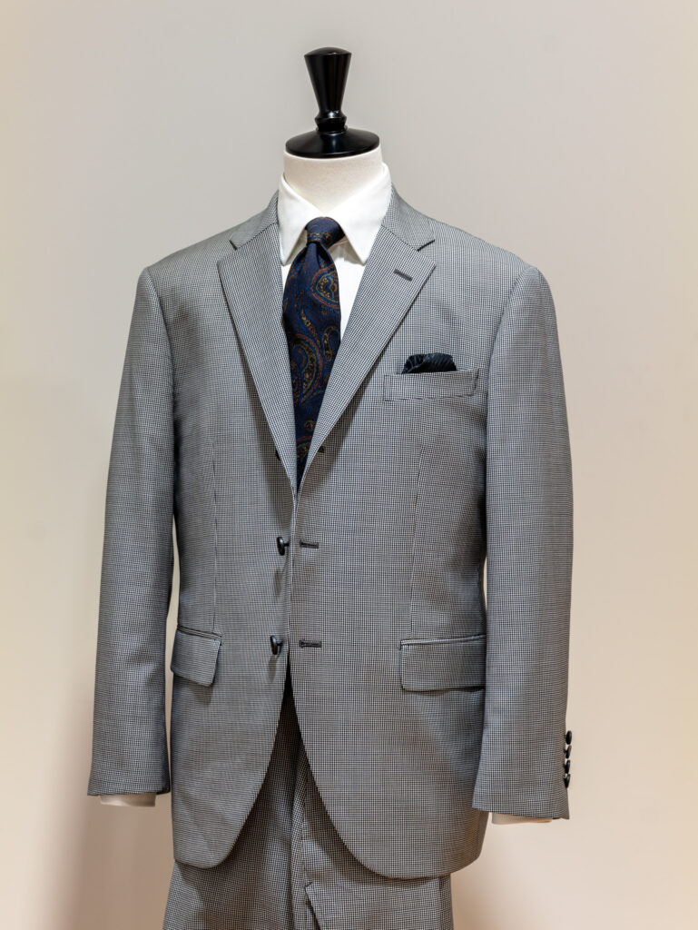 今回仕上がったスーツは、その中でも人気の高い ライトグレーの極細千鳥格子 を使用した一着です。