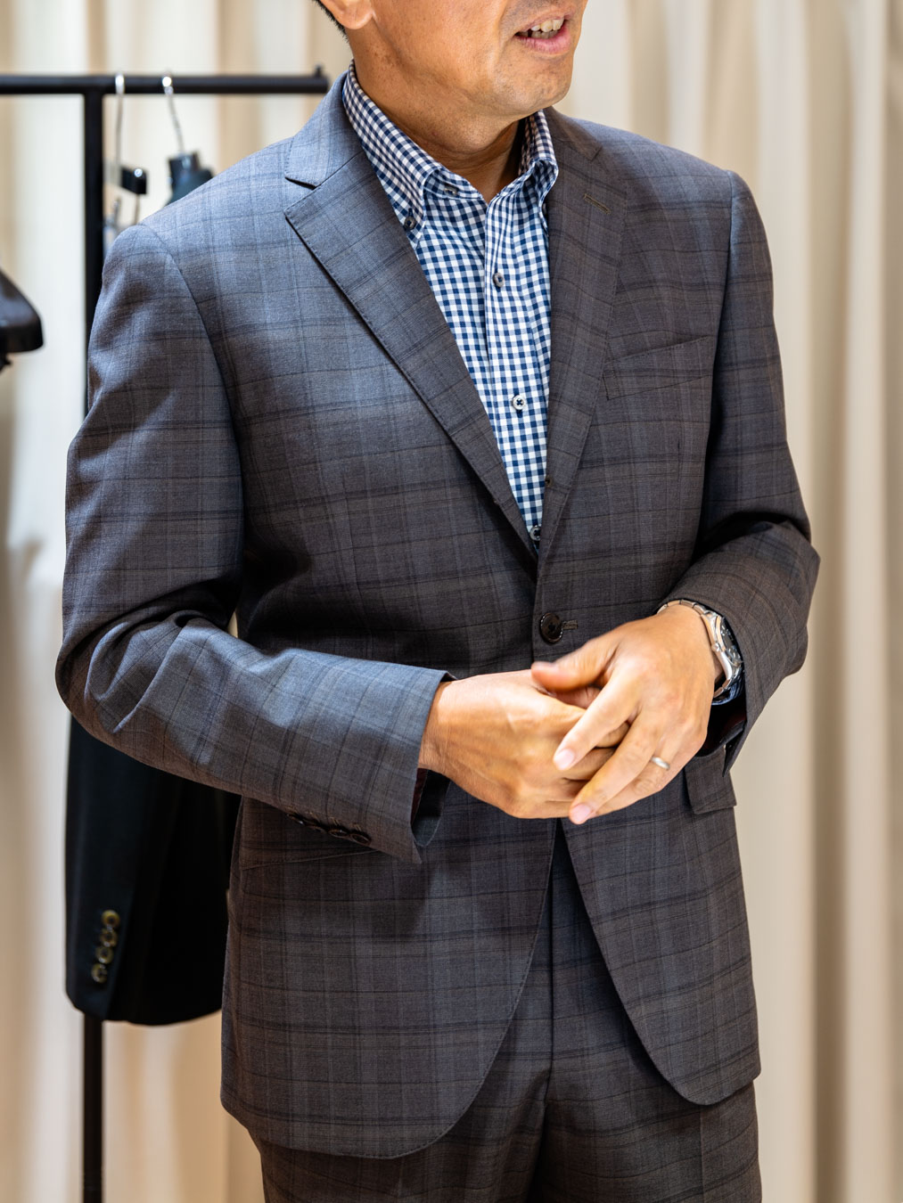 今回はいわゆるスーツ素材として多いウール素材ではなくコットン素材のご提案です。