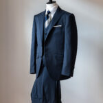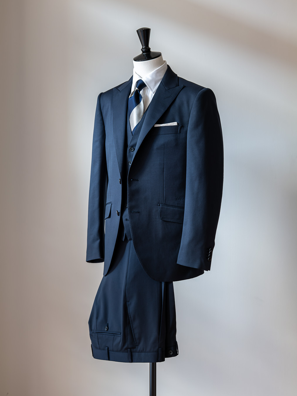 例えば、ネイビーの細畝コーデュロイで仕立てたセットアップは、カジュアルなシーンにもマッチし、タイドアップすればドレスダウンの絶妙なバランス感が生まれます。