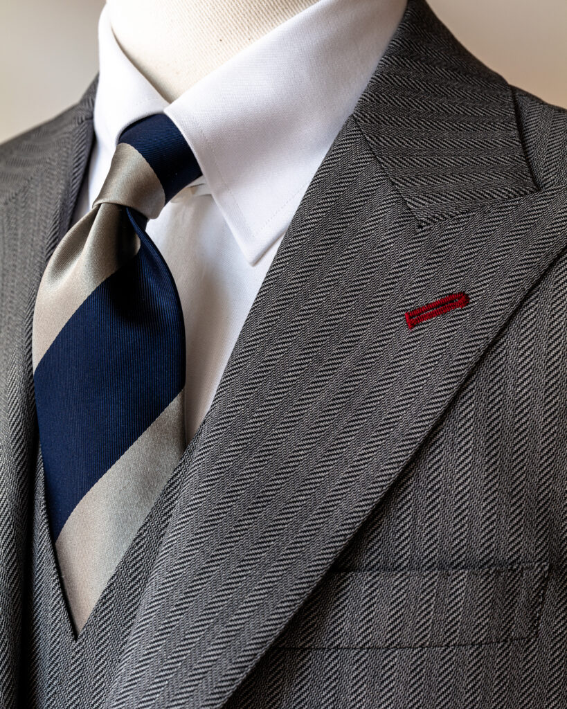 一見するとクラシックなヘリンボーンですが、