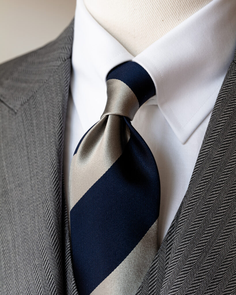ネイビー×シルバーのタイで締める都会的な男らしさ