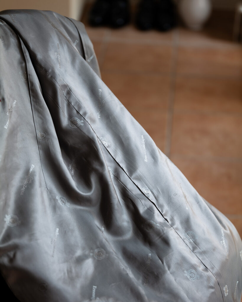 青みをわずかに帯びたゼニア特有のネイビーが、圧倒的な高級感を演出する1着です。