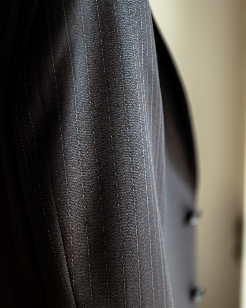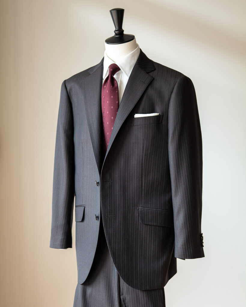 落ち着きと色気を併せ持つ、チャコールブラウンストライプ